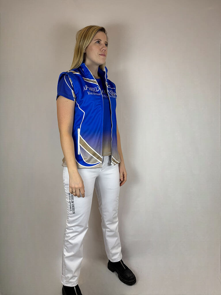 Allweather vest til kvinder – perfekt til trav! Vandafvisende, vindtæt og åndbar med god bevægelsesfrihed. Ideel til både træning og hverdagsbrug. Den kan selvfølgelig fåes i fleece eller vinter udgave også.